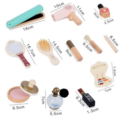 Rollenspiele für Kinder zur Verbesserung ihrer praktischen Fähigkeiten Eine große Auswahl an Zubehör, um das Interesse Ihres Kindes zu wecken Enthält: Haartrockner, Spiegel, Schere, Kamm. Lidschattenpalette Lippenstiftkarte Parfüm