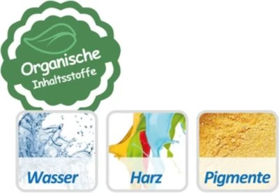 + Ausschließlich organische Inhaltsstoffe Wasser – Harz – Pigmente: