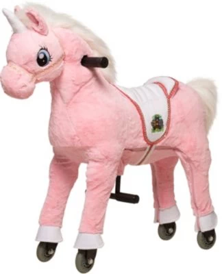 Mit diesem tollen Spielzeug geht der Traum vom Einhorn-Reiten in Erfüllung! Dieses kuschelweiche Einhorn „Rosalie“ bietet Ihrem kleinen Liebling einen bequemen Sitz, Stabilität durch Haltegriffe und jede Menge Freude! Besonders toll: werden die Fußstützen nach unten gedrückt, bewegt Rosalie sich nach vorn!