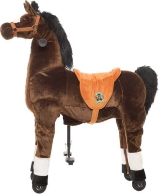 Fast so toll wie ein echtes Pony: dieses kuschelweiche Pferdchen „Amadeus“ bietet Ihrem kleinen Liebling einen bequemen Sitz, Stabilität durch Haltegriffe und jede Menge Freude! Besonders toll: werden die Fußstützen nach unten gedrückt, bewegt Amadeus sich nach vorn! Einfach das perfekte Geschenk für kleine Pferdefans! Die Kunststoffrollen hinterlassen keine Spuren auf den Böden und eignen sich somit auch ideal für die Verwendung in der Wohnung. Zudem bewegt sich das Aufsitz-Pferd lautlos, sodass beim Spielen keine unangenehmen Geräusche entstehen.