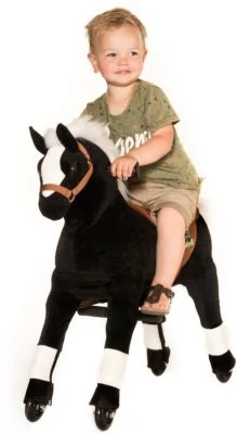 Fast so toll wie ein echtes Pony: dieses kuschelweiche Pferdchen „Maharadscha“ bietet Ihrem kleinen Liebling einen bequemen Sitz, Stabilität durch Haltegriffe und jede Menge Freude! Besonders toll: werden die Fußstützen nach unten gedrückt, bewegt Maharadscha sich nach vorn! Einfach das perfekte Geschenk für kleine Pferdefans! Die Kunststoffrollen hinterlassen keine Spuren auf den Böden und eignen sich somit auch ideal für die Verwendung in der Wohnung. Zudem bewegt sich das Aufsitz-Pferd lautlos, sodass beim Spielen keine unangenehmen Geräusche entstehen.