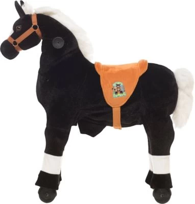 Fast so toll wie ein echtes Pony: dieses kuschelweiche Pferdchen „Maharadscha“ bietet Ihrem kleinen Liebling einen bequemen Sitz, Stabilität durch Haltegriffe und jede Menge Freude! Besonders toll: werden die Fußstützen nach unten gedrückt, bewegt Maharadscha sich nach vorn! Einfach das perfekte Geschenk für kleine Pferdefans! Die Kunststoffrollen hinterlassen keine Spuren auf den Böden und eignen sich somit auch ideal für die Verwendung in der Wohnung. Zudem bewegt sich das Aufsitz-Pferd lautlos, sodass beim Spielen keine unangenehmen Geräusche entstehen.