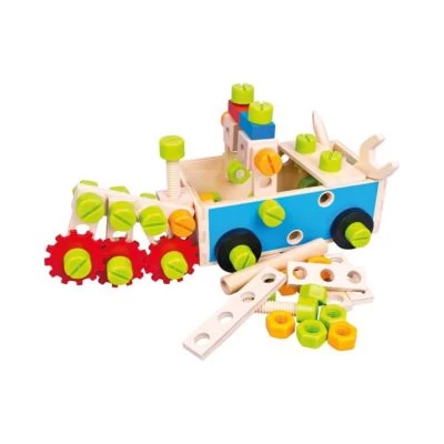 Ein tolles Geschenk für kleine Bastler und Tüftler: Mit der Werkzeugkiste von Bino kann der Nachwuchs schrauben, konstruieren und bauen. Werkzeugkiste von Bino mit 50 Werkzeugen wandelbare Aufbewahrungs-Kiste ab 36 Monaten aus Holz (Muttern und Schrauben aus Kunststoff) In dem Werkzeugkasten sind insgesamt 50 Teile enthalten, darunter ein Schraubenschlüssel, Schrauben und Muttern. Die zugehörige Holzkiste ist weit mehr als Aufbewahrung oder Werkbank: Mit ihrer cleveren Gestaltung lässt sie sich in viele der Konstruktionen integrieren. Wie das Werkzeug ist sie aus robustem Holz gefertigt und erweist sich als strapazierfähiges Spielzeug mit langer Nutzungsdauer. Leuchtende Farben machen das kindgerechte Design perfekt.