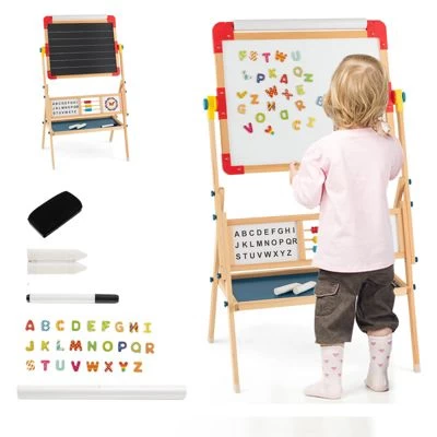 Entworfen mit einem doppelseitigen Zeichenbrett, das um 360° gedreht werden kann, besteht diese Kunststaffelei aus Holz aus einer Tafel und einem magnetischen Whiteboard. Außerdem schafft die Papierrolle zusätzliche Fläche zum Zeichnen und Schreiben.