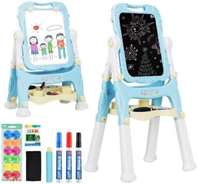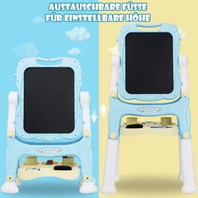 Diese magnetische Maltafel ist die perfekte Geschenkidee für kreative und malbegeisterte Kinder. Sie verfügt über eine konische, dreieckige Struktur für hervorragende Stabilität und kann dabei dank des praktischen 2-in-1-Designs sowohl als Magnet- als auch als Schreibtafel verwendet werden. Die Tafel kann hierbei problemlos abgenommen werden, um die Kunstwerke unterwegs weiter vervollständigen zu können. Das Gestell ist hierbei auf zwei unterschiedliche Höhen einstellbar und wird mit jeder Menge Zubehör, inklusive Marker, Kreide und Radiergummi geliefert, welches im komfortablen Ablagefach sicher verstaut werden kann.