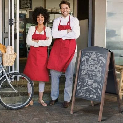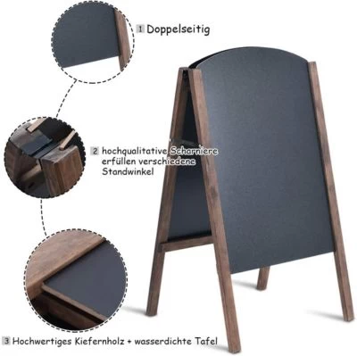 Unser doppelseitiger beschriftbarer Kundenstopper aus lackiertem Holz ist für Innen- und Außenbereich einsetzbar, ideal für ein Menü oder für Werbebotschaften Ihres Geschäftes, Pubs oder Cafés. Die Oberfläche dank der hochwertiger Verarbeitung ist sehr robust, abriebfest und leicht zu reinigen. Der Stopper ist solide gebaut und zwei Tafeln sind mit Scharnieren verbunden, ist sehr stabil und lasst sich schnell zusammenfalten.