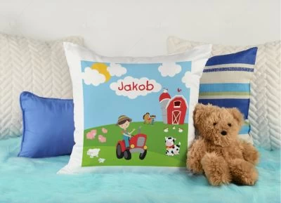 Das Kissen ist mit einer Federfüllung gefüllt und wird mit einem liebevoll gestalteten Motiv und dem Namen eures Kindes personalisiert.
