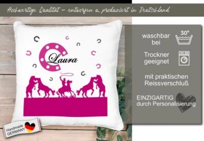 Das Kissen ist mit einer Federfüllung gefüllt und wird mit einem liebevoll gestalteten Motiv und dem Namen eures Kindes personalisiert.