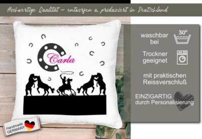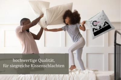 Das Kissen ist mit einer Federfüllung gefüllt und wird mit einem liebevoll gestalteten Motiv und dem Namen eures Kindes personalisiert.