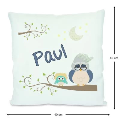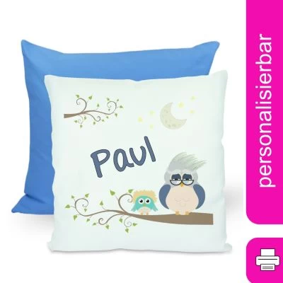 Das Kissen ist mit einer Federfüllung gefüllt und wird mit einem liebevoll gestalteten Motiv und dem Namen eures Kindes personalisiert.