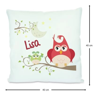 Das Kissen ist mit einer Federfüllung gefüllt und wird mit einem liebevoll gestalteten Motiv und dem Namen eures Kindes personalisiert.