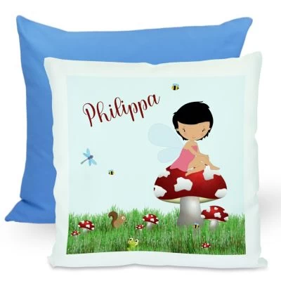 Das Kissen ist mit einer Federfüllung gefüllt und wird mit einem liebevoll gestalteten Motiv und dem Namen eures Kindes personalisiert.