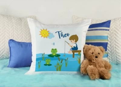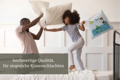 Das Kissen ist mit einer Federfüllung gefüllt und wird mit einem liebevoll gestalteten Motiv und dem Namen eures Kindes personalisiert.