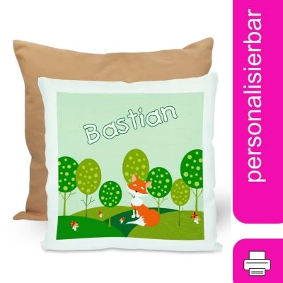 Das Kissen ist mit einer Federfüllung gefüllt und wird mit einem liebevoll gestalteten Motiv und dem Namen eures Kindes personalisiert.