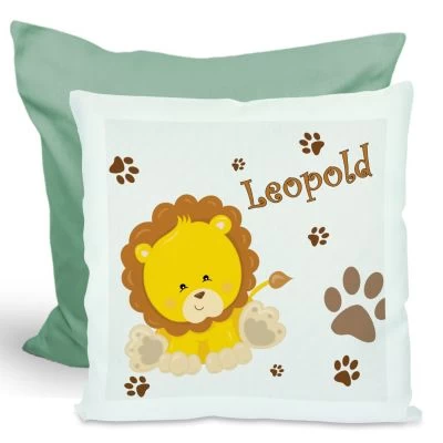 Das Kissen ist mit einer Federfüllung gefüllt und wird mit einem liebevoll gestalteten Motiv und dem Namen eures Kindes personalisiert.
