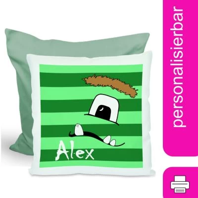 Das Kissen ist mit einer Federfüllung gefüllt und wird mit einem liebevoll gestalteten Motiv und dem Namen eures Kindes personalisiert.