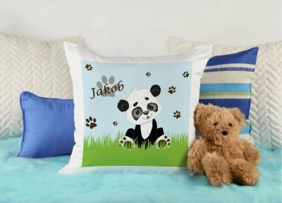 Das Kissen ist mit einer Federfüllung gefüllt und wird mit einem liebevoll gestalteten Motiv und dem Namen eures Kindes personalisiert.