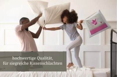 Das Kissen ist mit einer Federfüllung gefüllt und wird mit einem liebevoll gestalteten Motiv und dem Namen eures Kindes personalisiert.