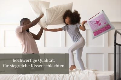 Das Kissen ist mit einer Federfüllung gefüllt und wird mit einem liebevoll gestalteten Motiv und dem Namen eures Kindes personalisiert.