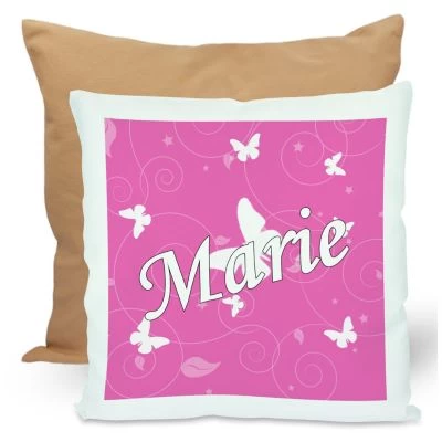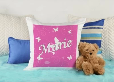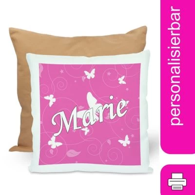 Das Kissen ist mit einer Federfüllung gefüllt und wird mit einem liebevoll gestalteten Motiv und dem Namen eures Kindes personalisiert.