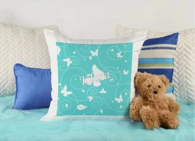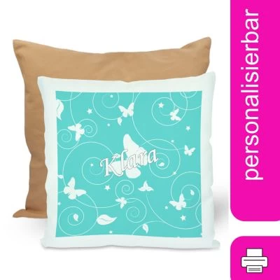 Das Kissen ist mit einer Federfüllung gefüllt und wird mit einem liebevoll gestalteten Motiv und dem Namen eures Kindes personalisiert.