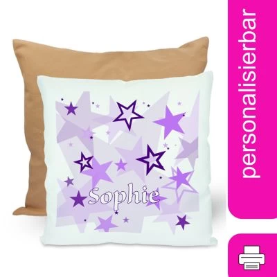 Das Kissen ist mit einer Federfüllung gefüllt und wird mit einem liebevoll gestalteten Motiv und dem Namen eures Kindes personalisiert.