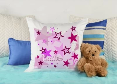 Das Kissen ist mit einer Federfüllung gefüllt und wird mit einem liebevoll gestalteten Motiv und dem Namen eures Kindes personalisiert.