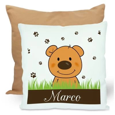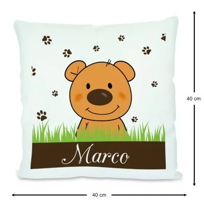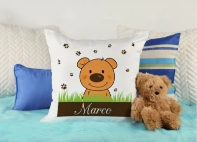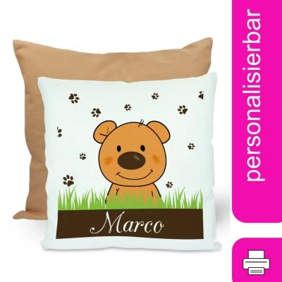 Das Kissen ist mit einer Federfüllung gefüllt und wird mit einem liebevoll gestalteten Motiv und dem Namen eures Kindes personalisiert.
