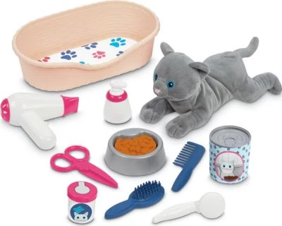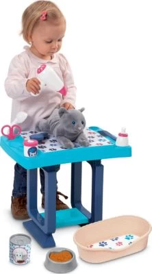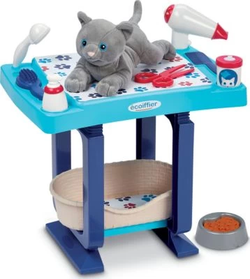 Im écoiffier Tierpflege-Center können die liebsten Kuscheltiere gepflegt und umsorgt werden. Das niedliche Spielset kommt mit einer hochwertigen, kuschelweichen Stoffkatze in Hellgrau sowie einem Katzenkörbchen. Zum umfangreichen Zubehör gehören neben dem Behandlungstisch ein Napf mit Futter, ein Fön, eine Bürste, eine Duschbrause, eine Schere sowie Pflegeprodukte.