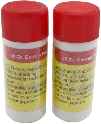 CARROM GLEITPULVER: 2 mal 85 g rein pflanzliches Gleitpulver in einer Dose mit Steckkappe,welches für ein optimales Gleiten der Carrom Steine sorgt.