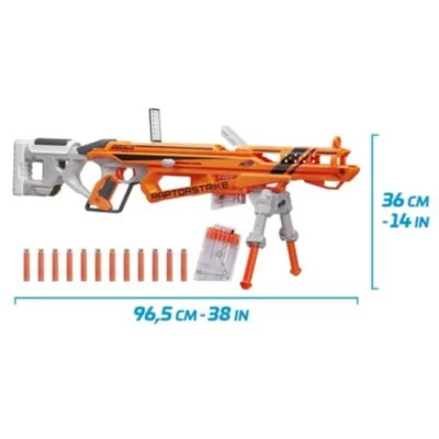 AccuStrike Serie mit hoher GenauigkeitZweibein inbegriffen2 Magazine inbegriffen18 Darts inbegriffenPop-up-Visier