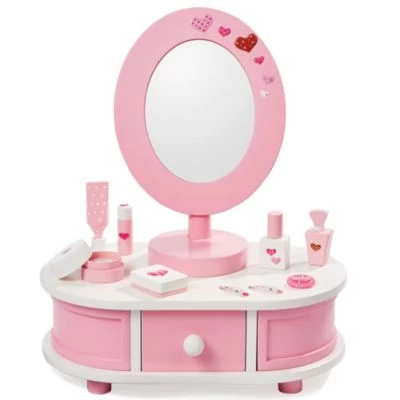 Der Schminktisch „Little Lady“ mit Spiegel ist ein Traum für die kleinen Prinzessinnen! Mit dem 12 tlg. Zubehör wird geschminkt und frisiert! Mit den süßen Herzaufklebern kann man den Schminktisch und das Zubehör selbst bekleben und verzieren. Ist die kleine Prinzessin fertig gestylt, können sämtliche Accessories in den praktischen Fächern und der Schublade verstaut werden.