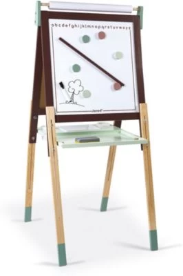 Janod – Tafel aus Holz Double Face Taupe und Grün – Skalierbar, höhenverstellbar – Magnetisches Whiteboard + Schiefer für Kreide – 13 Zubehörteile im Lieferumfang enthalten – Ab 3 Jahren, J09632