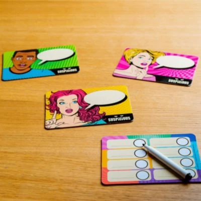Im Spiel Suspicious von Jumbo ist jede Person verdächtig, denn niemand weiß, wer die*der Spion*in ist. Mit Ausnahme einer Person erhalten alle dasselbe geheime Codewort. Mit sorgfältig gewählten Hinweisen beschreibst du dein geheimes Codewort und versuchst herauszufinden, auf welcher Seite du stehst. Doch Vorsicht – vielleicht bist DU ja die*der Spion*in.