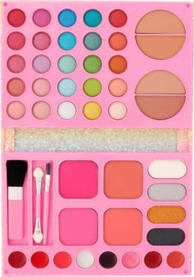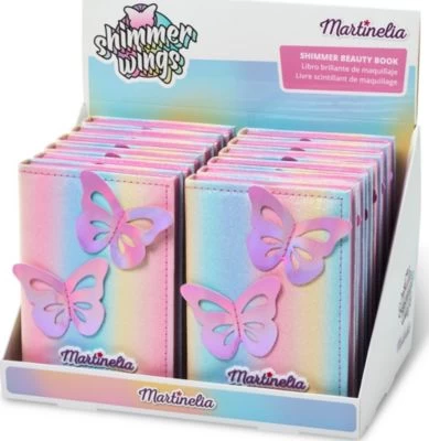 Das Martinelia Shimmer Wings Glitzer Beauty Buch enthält zahlreiche tolle Schminkprodukte. Acht Lippenstift-Farben, vier Sorten Rouge, vier Mal Puder und 29 Lidschatten-Farben bieten coole Möglichkeiten, sich an ersten Makeups auszuprobieren! Im Set enthalten sind auch ein Doppelapplikator sowie zwei Pinsel. Das funkelnde Glitzerbuch, in dem alle Produkte enthalten sind, sorgt zusätzlich für Begeisterung!
