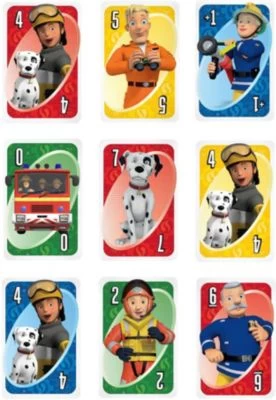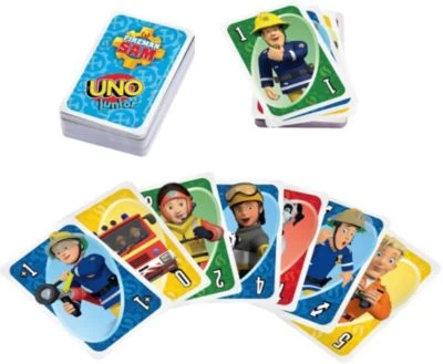 Diese vereinfachte Version des UNO Kartenspiels für junge Spieler ist mit schönen Bildern von Sam und seinen Freunden aus der Serie „Feuerwehrmann Sam“ versehen. Da das Spiel mit drei verschiedenen Schwierigkeitsgraden gespielt werden kann, hält es Schritt mit der kindlichen Entwicklung. Auf der ersten Schwierigkeitsstufe müssen nur passende Karten gefunden werden, auf der zweiten Stufe kommen die Retour- und Aussetzen-Karten dazu und auf der dritten Stufe sind auch die „Zieh 1“- und „Zieh 2“-Karten dabei.