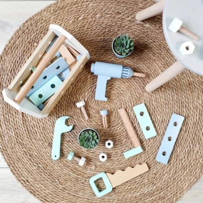 Auch im Kinderzimmer gibt es immer etwas zu reparieren. Da kommt die Werkzeugkiste Fagus von Musterkind gerade recht. Sie begeistert mit zahlreichen Accessoires wie Schraubenzieher, Säge, Bohrmaschine und vielem mehr. Werkzeugkiste Fagus von Musterkind 27-tlg. Werkzeugkasten mit Tragegriff und Löchern, Bohrmaschine, Hammer, Schraubendreher, 1 Maulschlüssel, 1 Säge, 1 Messwinkel, 4 Schrauben, 4 Muttern, 4 Nägel, 8 Verbindungsplatten 25(L) x 14(B) x 15(H) cm aus Holz ab 3 Jahren geeignet Eine Werkzeugkiste wie für Profis: Das Set ist in lässigem skandinavischem Design gehalten und mit zahlreichem Zubehör ausgestattet. Der robuste Werkzeugkasten ist mit einem praktischen Tragegriff versehen und auch für unterwegs geeignet. 27 Teile sorgen bei Minis sofort für große Begeisterung. In die seitlichen Löcher können die Schrauben mit dem Schraubenzieher eingedreht und mit den Muttern befestigt werden. Das Set beinhaltet zudem eine Bohrmaschine, einen Hammer und einen Maulschlüssel. Natürlich dürfen auch eine Säge, ein Messwinkel, Nägel und verschraubbare Verbindungsplatten nicht fehlen. So hat der Hobbyhandwerker immer alles parat, wenn Hilfe benötigt wird. Mit den Elementen des Sets trainieren Kids ihre motorischen Fähigkeiten. Zudem eignet sich die Werkzeugkiste ideal dafür, mit Geschwistern und Freunden zu spielen. Das umfangreiche Set ist für Kinder ab drei Jahren zu empfehlen.