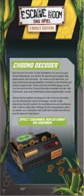 Nur gemeinsam lassen sich die Hinweise sammeln und die kniffligen Rätsel lösen. Beeilung, die Uhr tickt! Werden die falschen Daten in den elektronischen Chrono-Decoder eingespielt, geht wertvolle Zeit verloren. Zwei spannende Abenteuer warten darauf, von drei bis fünf Spielern in maximal sechzig Minuten bestritten zu werden. Zum Warmwerden gibt es natürlich ein einfaches Einführungsspiel.