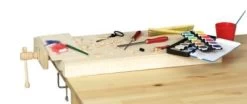 Die Arbeitsplatte lässt sich einfach am Tisch befestigen und schützt Ihren Tisch vor Farbe, Kratzern und sonstigen Schäden, die durchs Basteln entstehen können. Durch die seitliche Spannbacke lassen sich Laubsägevorlagen und andere Werkstücke einspannen und bearbeiten. 2 Zwingen zur Befestigung und Filzgleiter, um Ihren Tisch beim Anbringen der Arbeitsplatte zu schützen, sind auch schon dabei.