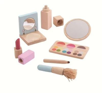 Spiele Maskenbildner mit diesem Set, das einen Spiegel, einen Pinsel, fünf Kosmetikartikel und eine Gürteltasche enthält. Wer ist als nächstes an der Reihe? Familienmitglieder, Freunde oder die Puppe?