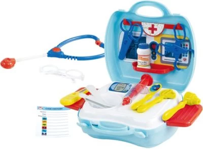 Dieser Doktorkoffer ist mit den wichtigsten Utensilien eines Arztes ausgestattet. Mit dem Stethoskop, der Spritze und den weiteren Utensilien können die Kleinen Arzt spielen.