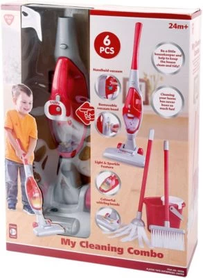 Dieses Set ist ideal für alle Kinder, die spielerisch nachahmen wollen, was die Eltern ihnen vorleben. So lernen kleine Jungen und Mädchen mit viel Spaß, im Haushalt mitzuhelfen. Mit diesem Set von Playgo können sogar die Kleinen im Haushalt für Sauberkeit sorgen. Der Staubsauger verfügt über eine Drucktastenfunktion und kann in einen Handstaubsauger verwandelt werden. Neben dem Staubsauger wird in dem Set ein Besen, ein Mopp und ein Eimer geliefert.