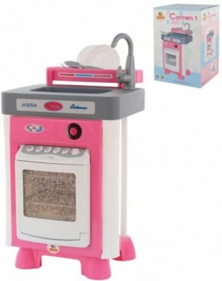 Ihr Kind liebt es für Sie zu kochen, aber niemand möchte nach dem Essen den unbeliebten Abwasch übernehmen? Dann ist die Kinder-Spiel-Spülmaschine 57891 Carmen von Polesie das perfekte Zubehör für jede Kinderküche. Die Spülmaschine lässt sich öffnen und mit Geschirr befüllen. Sie verfügt über einen Wasserbehälter, der das Wasser auf die doppelt transparente Tür sprüht, um den Waschvorgang realistisch wirken zu lassen. Natürlich kann der kleine Abwasch zwischendurch am Spülbecken vorgenommen werden. Im Lieferumfang sind zwei Teller, Besteck sowie eine Ablage für das Geschirr enthalten.