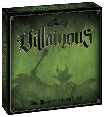 Disney Villainous – Das spannende Strategiespiel, in dem jeder Spieler sein eigenes, finsteres Ziel verfolgt, um der größte Bösewicht der Disney Welt zu werden!Die Spieler verwandeln sich in bekannte Disney Bösewichte. Doch wer ist der größte Schurke unter ihnen? Es gewinnt, wer stets sein finsteres, zur Figur passendes Spielziel im Blick behält und den Mitstreitern lästige Helden in den Weg stellt. Einzigartige Disney Illustrationen, kunstvolle Spielfiguren und eine verdrehte Spielmoral machen dieses Strategiespiel zu etwas ganz Besonderem! Inhalt: 6 Spielertafeln, 6 Bösewicht-Spielfiguren, 180 Bösewicht-Karten, 90 Schicksal-Karten, 84 Chips, 1 Kessel, 6 Spielhilfen, 6 Bösewicht-Handbücher