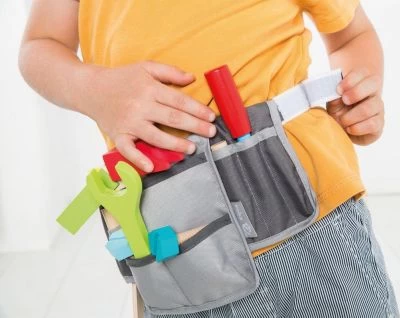 – Gürtel hat Platz für das inklusive Werkzeug-Set aus Holz