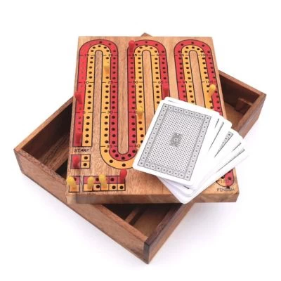 • Cribbage-Spielbrett mit Stiften aus Holz, inkl. Kartenspiel
