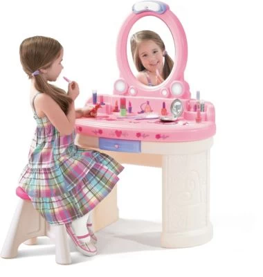 Mädchen im Schminkalter können es genießen, ihr Make-up aufzutragen und ihr Haar zu stylen, während sie am Fantasy Vanity sitzen. Das Schminktisch-Set ist hübsch gestaltet und eine süße Ergänzung für jedes Spielhaus oder Kinderzimmer.