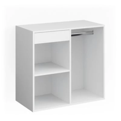 Mit diesem modernen Schrank finden Sie endlich Platz für alle Beauty Artikel. Ergänzt mit unserem Schminktisch können Sie sich Ihre persönliche Beauty-Oase schaffen. Sie werden schlichte Design in Verbindung mit den Abstellflächen und der Kleiderstange nicht mehr missen wollen. Je nach Bedarf ist dieser Schrank mit unseren praktischen Faltboxen erweiterbar und wird somit zum wahren Stauraumwunder.