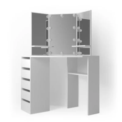 Unser hochwertiger Eck-Kosmetiktisch Arielle macht Ihre tägliche Schminkroutine zum Vergnügen.
