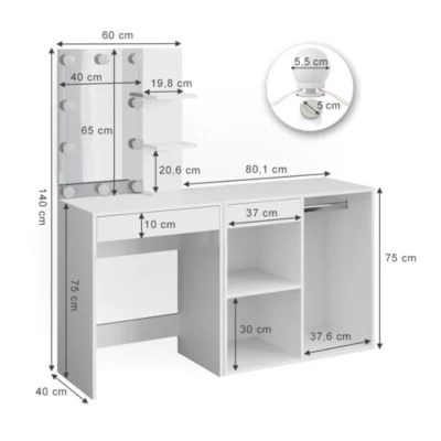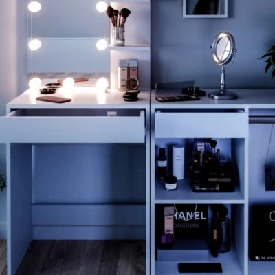 Mit diesem modernen Kosmetiktisch wird die tägliche Schminkroutine zum Vergnügen. Ergänzt mit unseren Schränken können Sie sich Ihre persönliche Beauty-Oase schaffen.